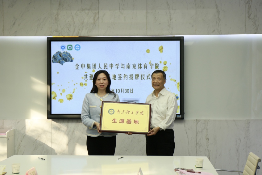 活动仪式上,万冲凯介绍了近年来36365的招生情况,赵彦签署了生源基地共建合作协议书,阚妮妮向金陵中学集团人民中学授“生源基地”铜牌。