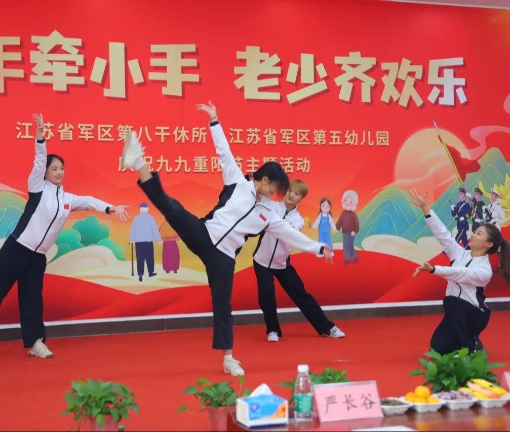 在校团委的大力支持和指导下,近日,武术与艺术学院师生走进军营,参加由江苏省军区第八干休所联合江苏省军区第五幼儿园组织的庆祝九九重阳节主题活动。