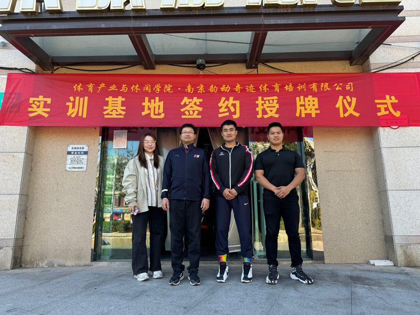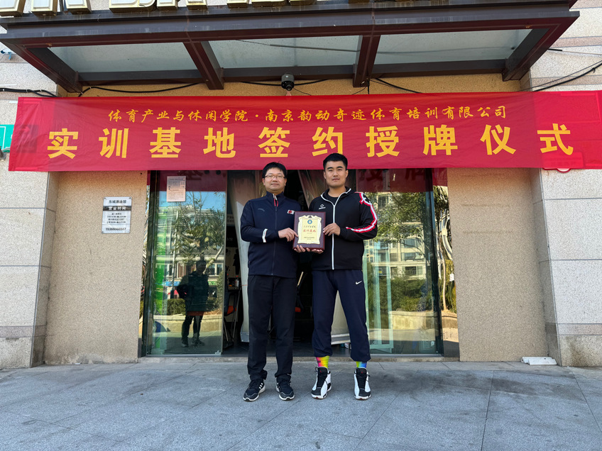 11月2日上午,体育产业与休闲学院与南京韵动奇迹体育培训有限公司举行共建实训基地签约授牌仪式。36365最新线路检测中心体育产业与休闲学院党总支副书记陈志,实训中心副主任韩默,南京韵动奇迹体育培训有限公司总经理张飞翔,南京韵动奇迹体育培训有限公司教练部经理宋毅出席了本次签约仪式。