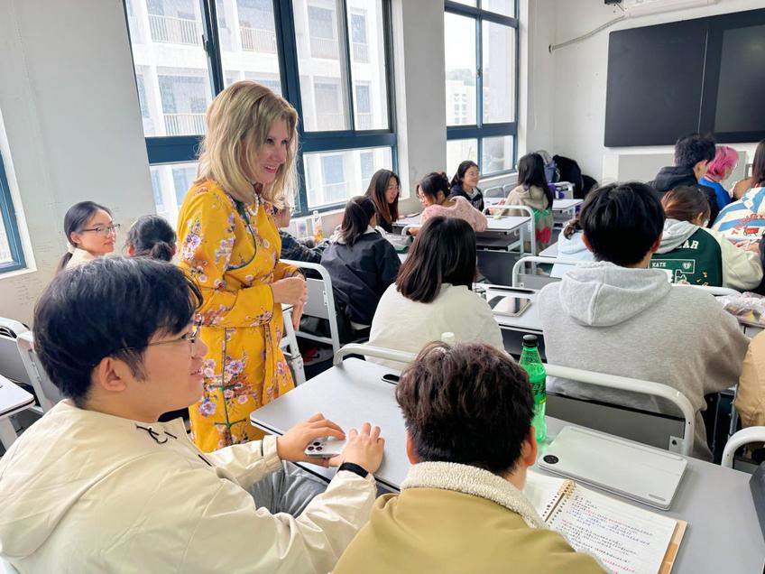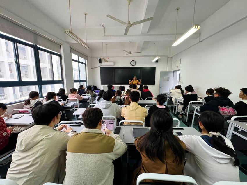 11月9日,体育产业与休闲学院体育经济管理系中外合作办学项目举办了一场别开生面的ESL示范课。来自罗克福德大学国际事务部副主任, ESL中心负责人麦琪·卡斯茨基亲自为同学们授课。课程开始前,麦琪老师与同学们热情的拥抱让课程迅速破冰。