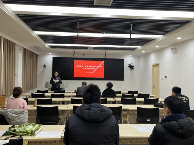 江苏省第二届体育教师教学基本功比赛开赛在即,11月16日下午,教务处邀请校内外专家在图书馆第二报告厅举行基本功比赛赛前辅导会。教务处副处长李英及全体参赛教师参加会议。