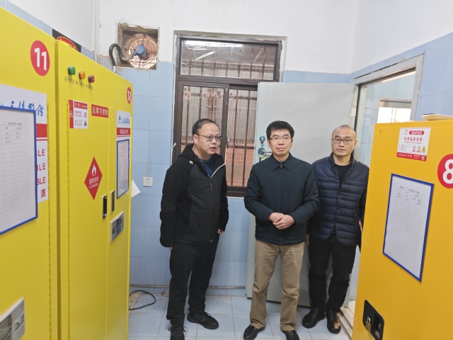 校领导在危化品仓库检查