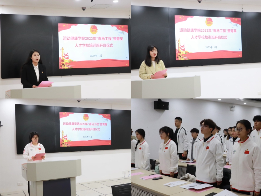 11月28日,运动健康学院2023年“青年马克思主义者培养工程”暨菁英人才学校开班仪式在图书馆第一报告厅举行。运动健康学院党总支副书记阚妮妮、学工办主任王菁菁、团委副书记魏晓民以及学院49名学员参加仪式。