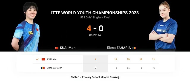 在U19女单决赛中,蒯曼展现了强大的统治力,以11:3,13:11,11:5,11:5,总比分4:0零封罗马尼亚选手伊莲娜,夺得冠军。在U19女双决赛中,蒯曼和徐奕搭档配合默契,发挥稳定,以3-0横扫考夫曼(德国)/赫西(威尔士),顺利登顶,摘得金牌。