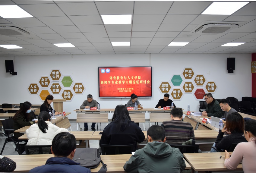 12月5日下午,体育教育与人文学院于教学办公楼220召开新闻学专业教学大纲论证研讨会。研讨会邀请了南京大学周海燕教授、南京师范大学邹举教授、扬州大学蔡之国教授3位校外专家。体育教育与人文学院院长沈鹤军、副院长康晓磊出席研讨会,体育传媒系主任李劭强、副主任张腾霄、体育传媒系部分教师参加本次会议。本次研讨会由张腾霄主持。