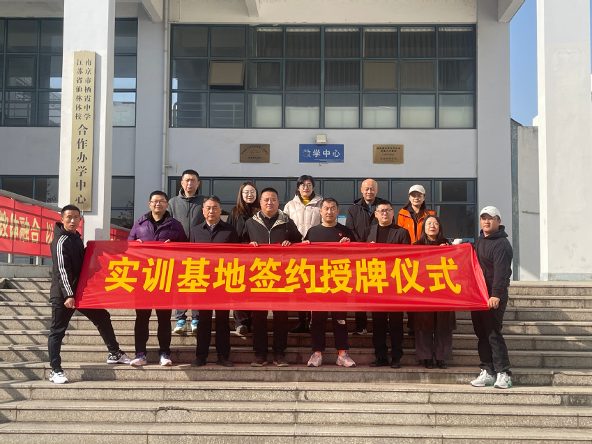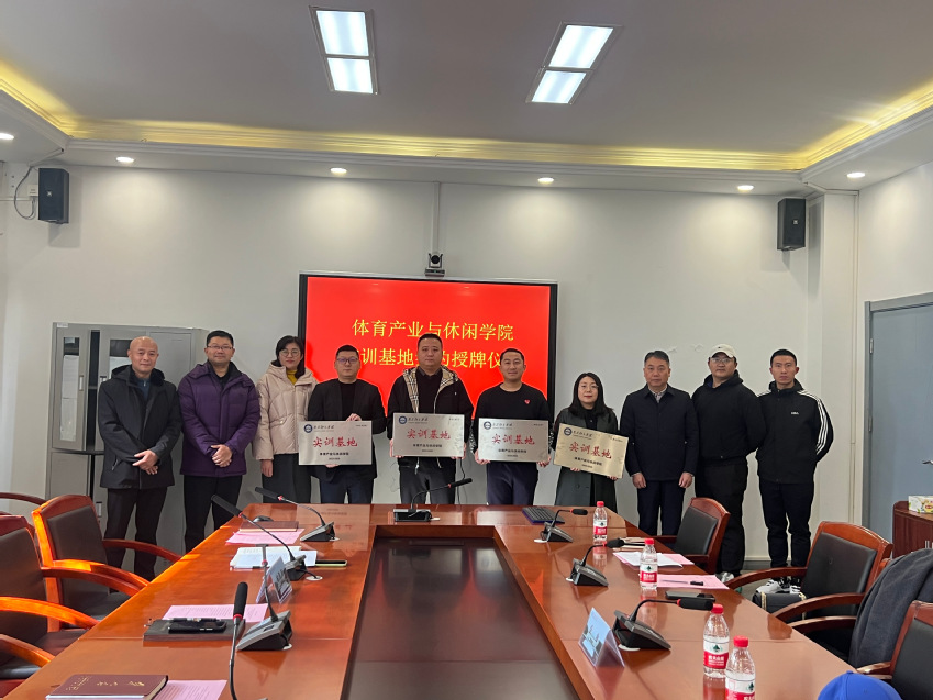 为进一步深化产教融合,赋能校企合作,12月7日上午,体育产业与休闲学院与江苏铁人体育文化发展有限公司、江苏飞睿体育文化发展有限公司、南京善跑体育科技有限公司及南京禾轩医疗器械有限公司行举行实训基地签约授牌仪式。体育产业与休闲学院党总支书记王进、党总支副书记陈志、副院长柏景岚,体育经济与管理系主任张建明,实训中心主任张松年,实训中心相关教师及实训基地企业代表参加本次活动。会议由柏景岚主持。