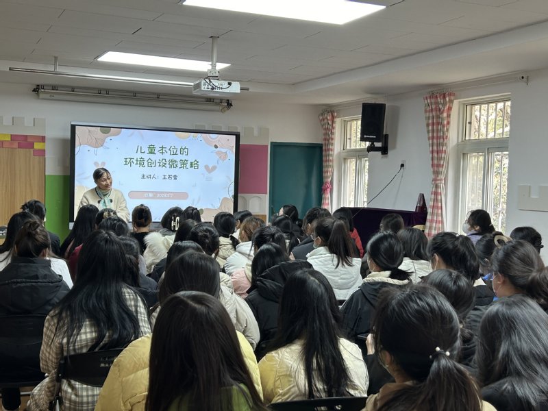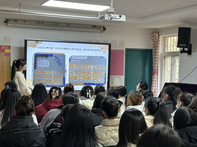 班级观摩活动之后,何宗桂园长就如何在幼儿园环境创设中体现办园理念、办园特色和同学们进行了简单的分享交流。王若雪老师以本班为例,就班级环境创设如何根据幼儿年龄特点,让环境与主题相结合,让环境起着无声的教育作用和同学们进行心得交流。在交流中,同学们积极交流自己的收获感悟,他们纷纷表示,这次的观摩活动使他们对“一切为了孩子的”理念有了更深刻地认识,也为他们在今后的学习中,如何将理论与实践更好地结合与应用带来了启发与思考。