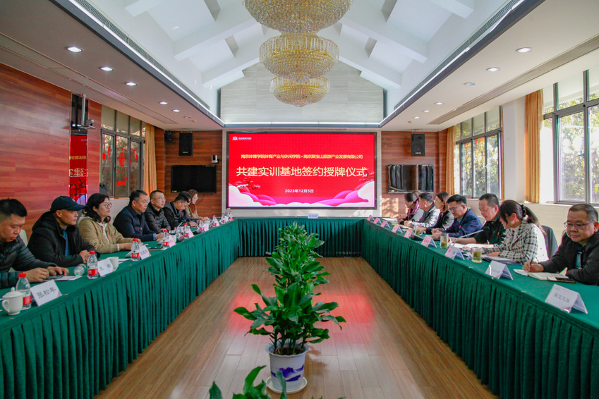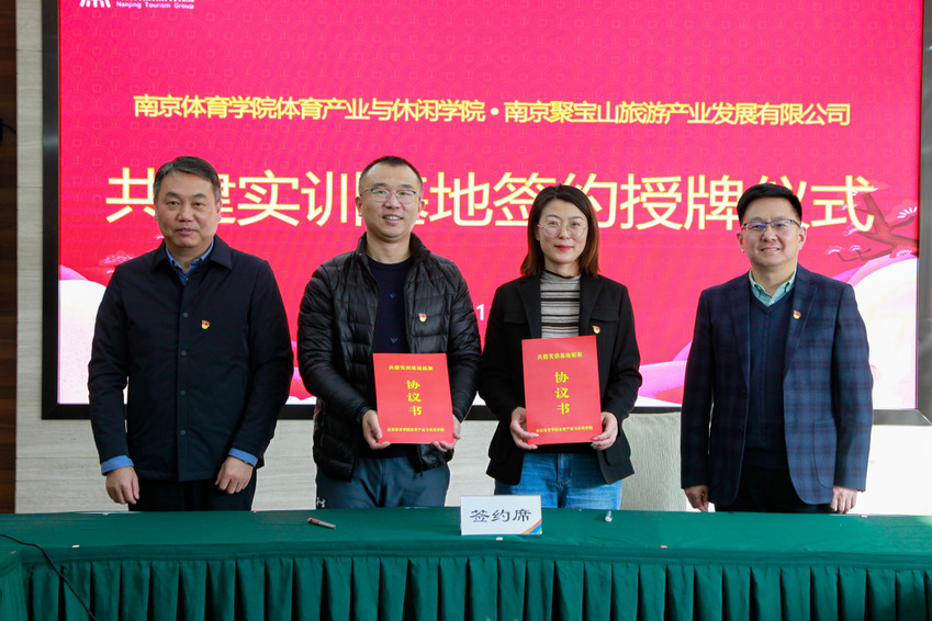 12月5日下午,体育产业与休闲学院与南京聚宝山旅游产业发展有限公司实训基地签约授牌仪式在聚宝山体育公园会议室举行。体育产业与休闲学院党总支书记王进、院长王龙飞,副院长柏景岚,南京聚宝山旅游产业发展有限公司党总支书记、董事长戴凡,公司领导班子成员、公司各部室负责人及学院相关教师参加签约授牌仪式。会议由聚宝山旅游产业发展有限公司党总支副书记傅丽主持。