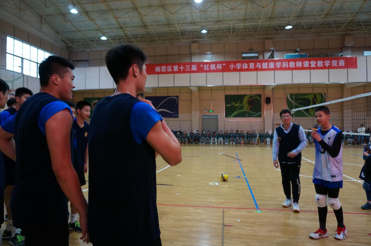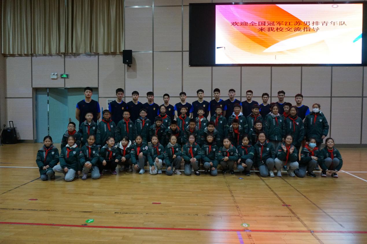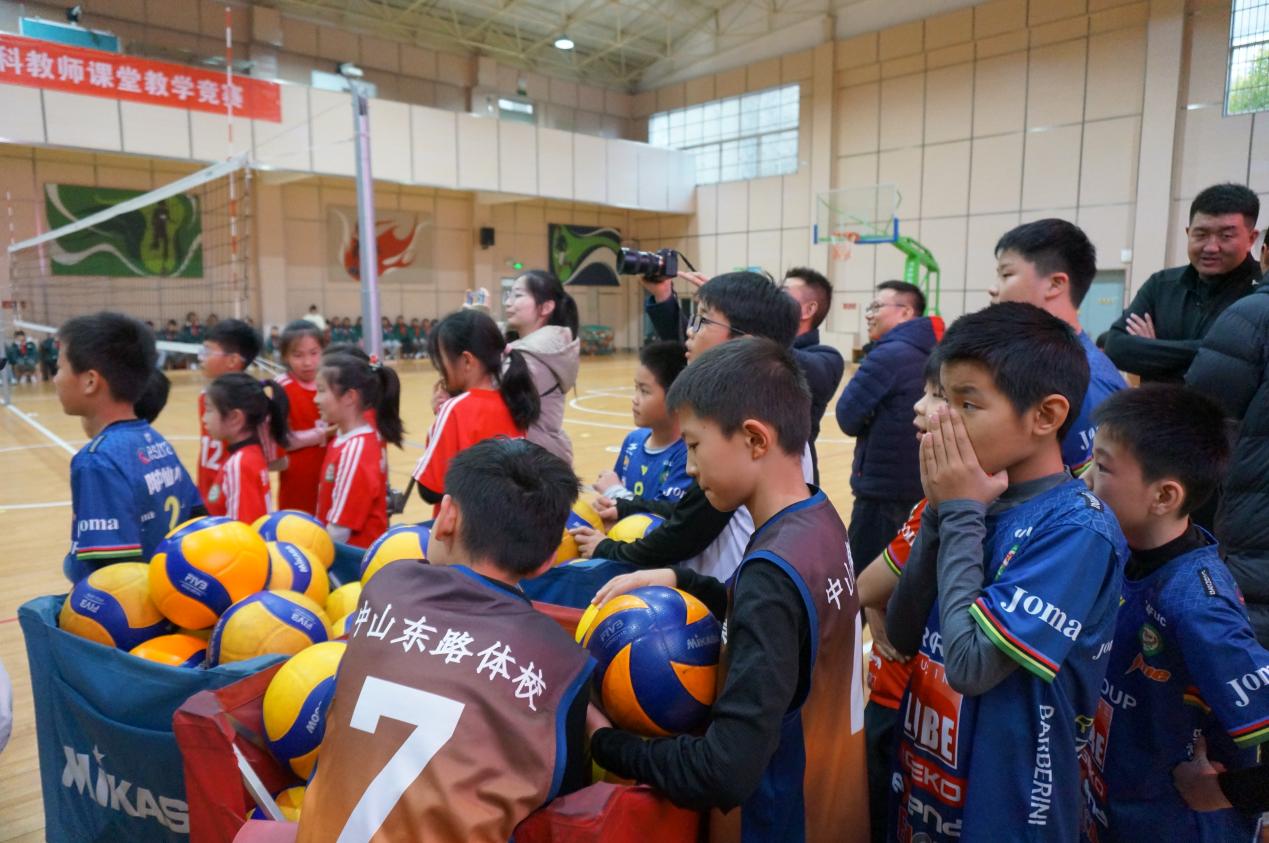 下午的仙林小学体育馆热闹非凡,一百多名小学生面带激动、兴趣盎然地观看江苏省男排青年组队员们精彩的对抗演练。发球、传球、跳跃、扣杀,队员们展现出的精湛球技、拼搏精神,让小朋友赞叹不已。在教学辅导环节,同学们积极认真地接受着大哥哥们的悉心辅导,围绕着排球技术提出各种问题,大哥哥们均给予了细致耐心的指导和解答。
