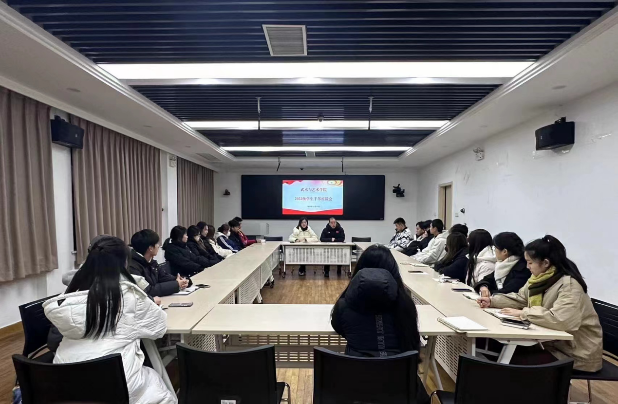 为加强学生骨干队伍建设,进一步提升学生干部的先锋意识、责任意识和服务意识,12月15日晚,武术与艺术学院在图书馆第二报告厅召开2023级学生干部座谈会。学院党总支副书记杜家俊出席会议,全体2023级学生干部参加。会议由2023级辅导员马高曼主持。