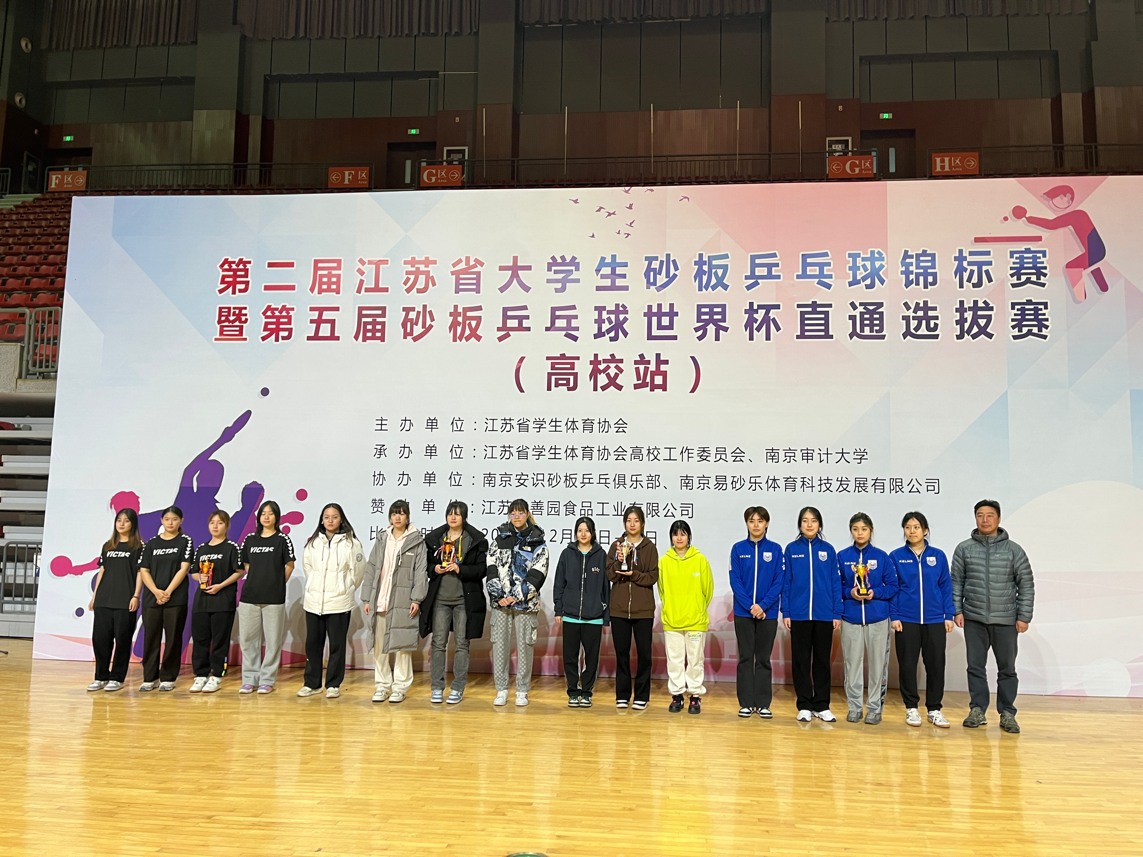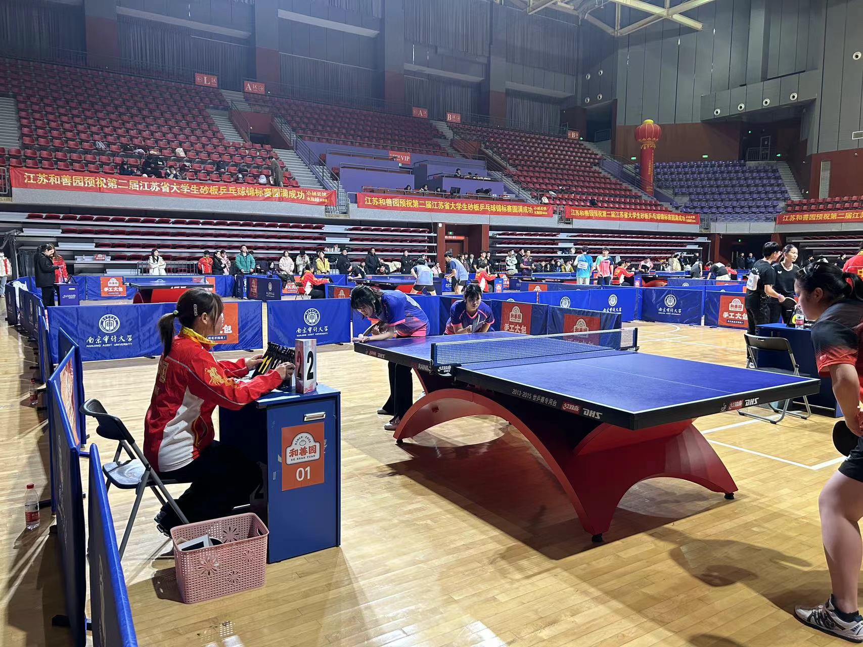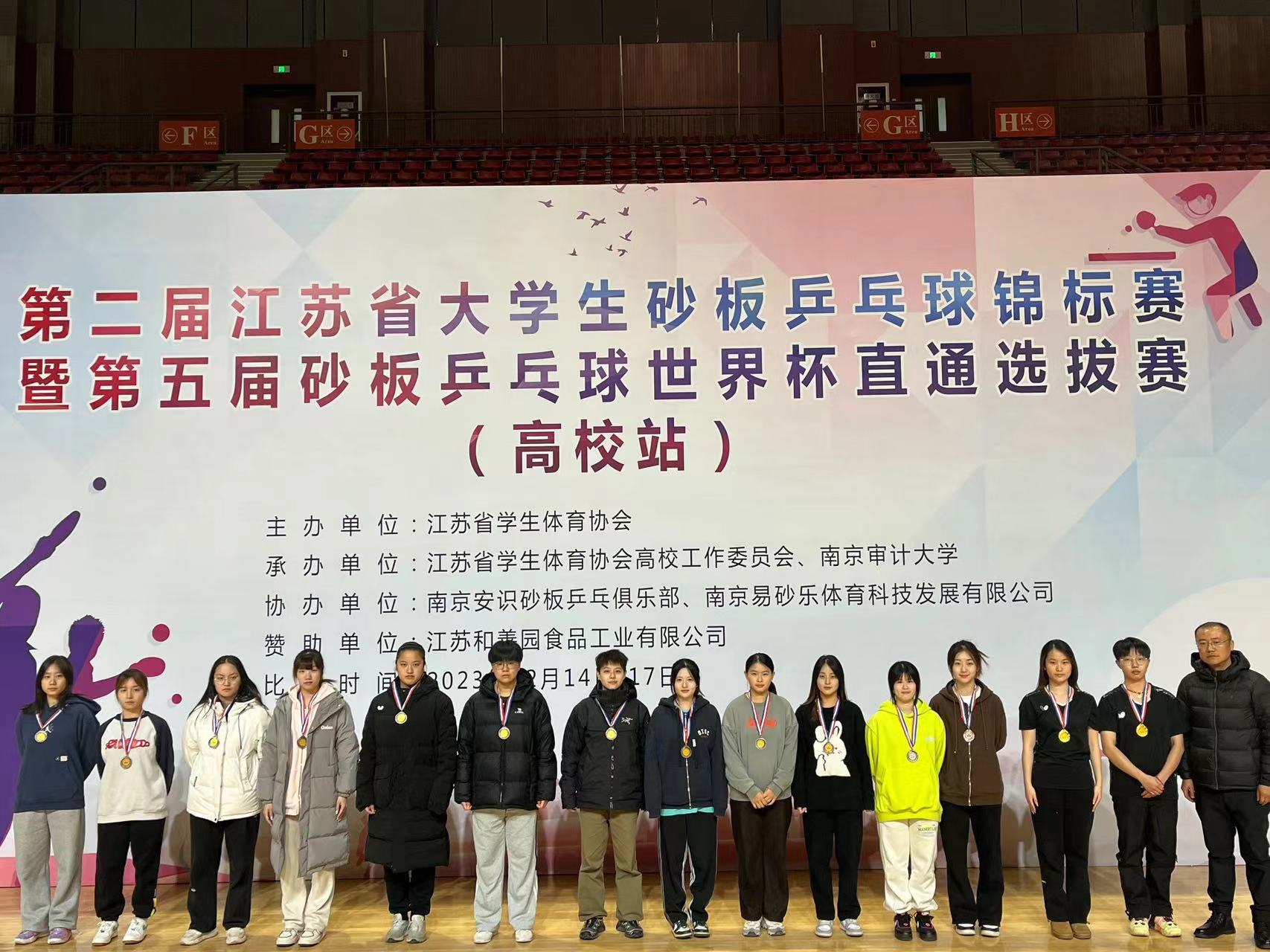 江苏省第二届砂板乒乓球比赛暨第五届砂板乒乓球世界杯直通选拔赛于2023年12月14日至17日在南京审计大学举行。本次比赛由江苏省学生体育协会主办。比赛分甲A组、甲B组和乙组三个组别,本次比赛参赛高校多,参赛队员多。36365本次比赛由周游老师和王寅周老师带队,经过三天的鏖战,36365大学生代表队参加甲A组比赛并获得了女团第二、女双第二、女单第三、女双第四、男团第五、女单第六、男单第六的好成绩。