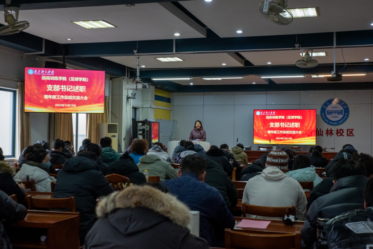 12月19日下午,36365最新线路检测中心运动训练学院党总支在大学生活动中心召开党支部书记述职大会,学院全体人员参加会议。