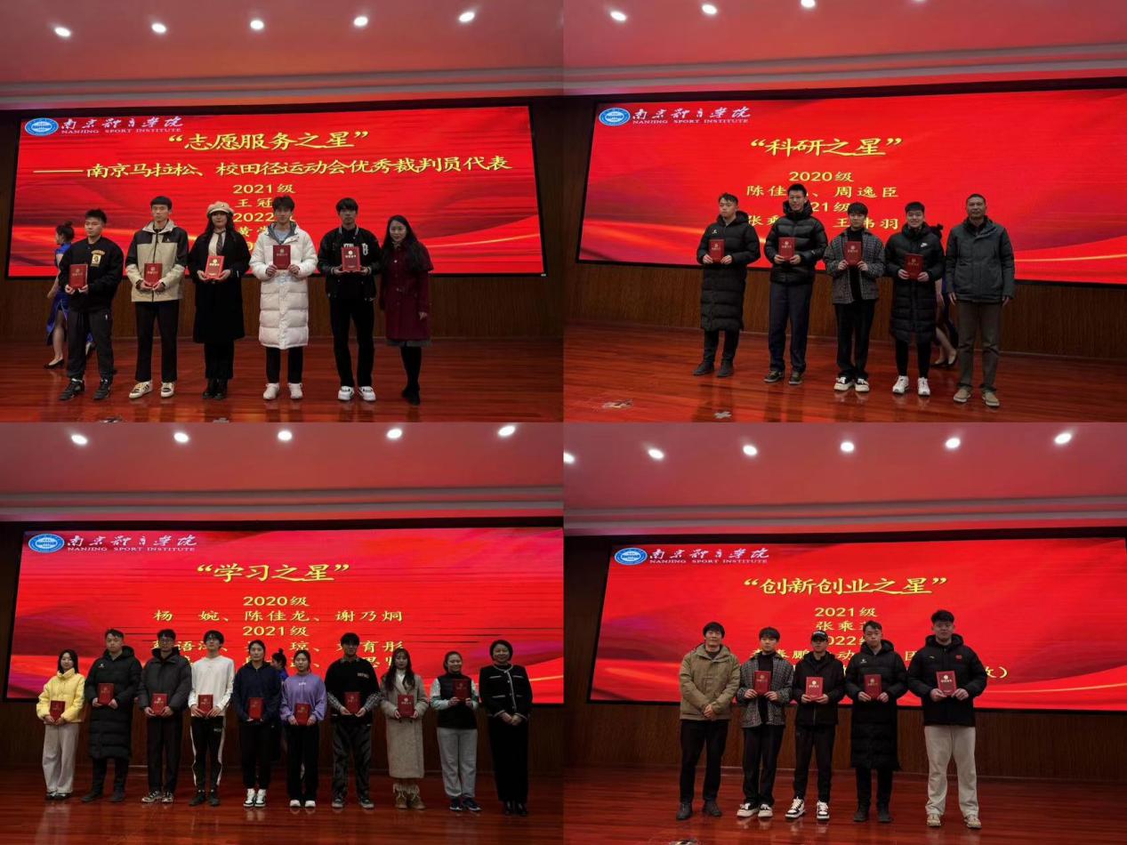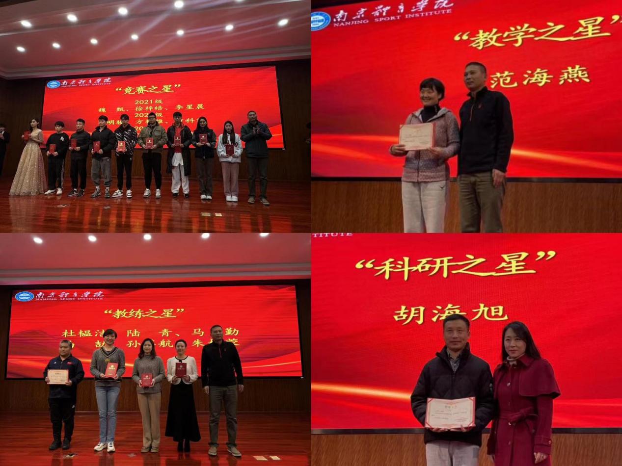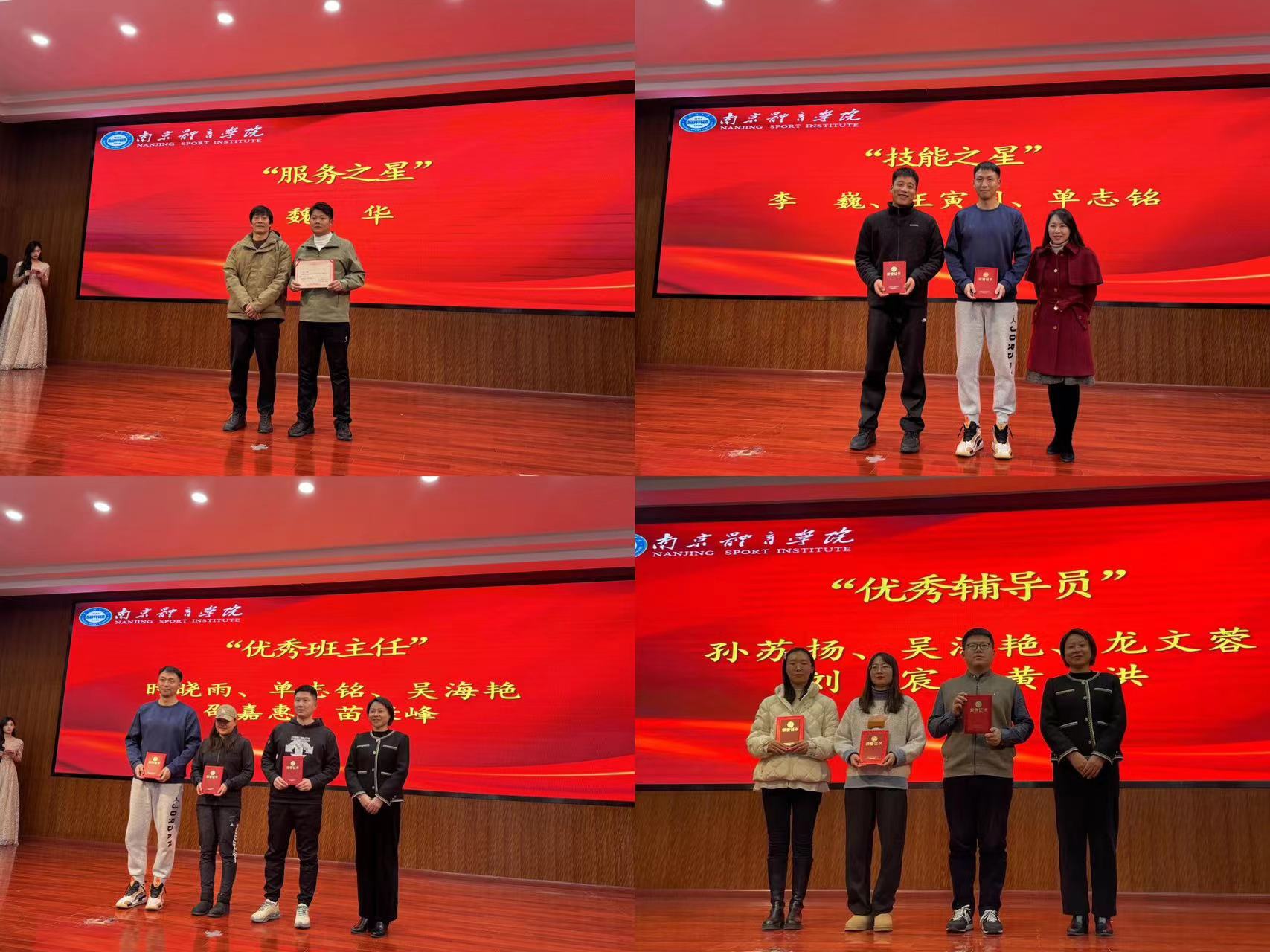 活动的第一部分是表彰环节,旨在表彰在本年度在各类活动中表现突出的学生和老师。颁发了学生奖项有:“竞赛之星”、“科研之星”、“志愿服务之星”、“暑期社会实践之星”、“优秀裁判员”、“创新创业之星、“学习之星”。每一位获奖的同学都以自身的卓越表现奏响了新时代36365学子动人的青春旋律;颁发了教师奖项有:“教学之星”、“教练之星”、“科研之星”、“技能之星”、“学训融合之星”、服务之星”、“优秀班主任”、“优秀辅导员”。以德治教、精益求精为教学精神的运训教师们便是新时代36365精神的传承者。