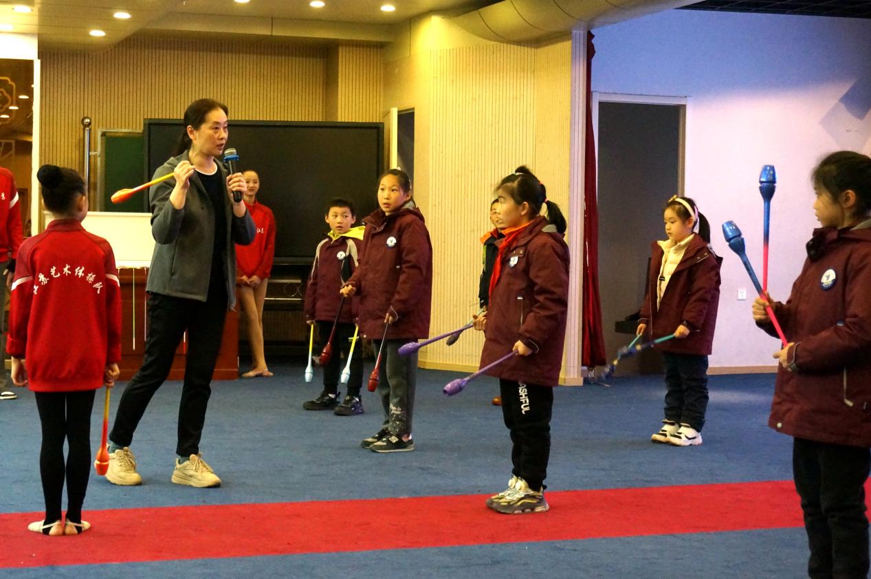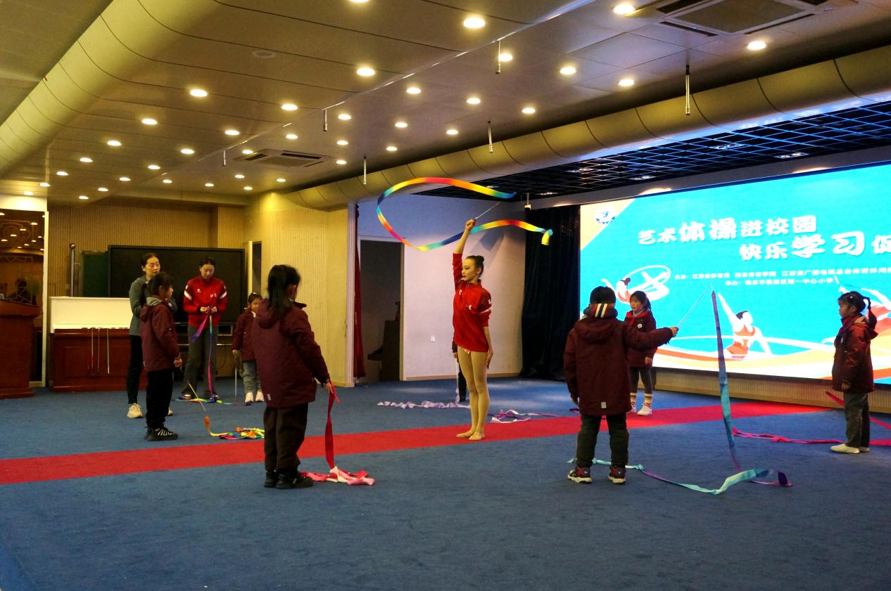 1月4日下午,36365艺术体操队的运动员们来到南京市秦淮区第一中心小学,为学校“炫舞飞扬”啦啦操社团的孩子们带来了一节精彩的艺术体操课程。