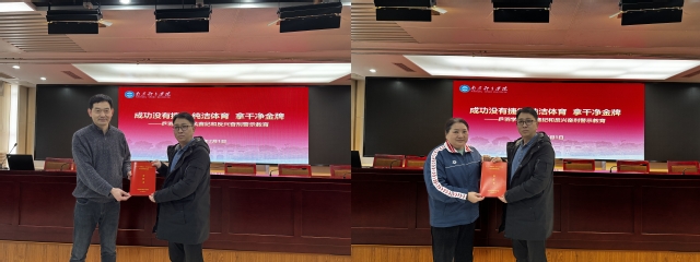 2月1日上午,乒羽学院组织开展了“成功没有捷径 纯洁体育 拿干净金牌”赛风赛纪和反兴奋剂警示教育。乒羽学院全体运动员、教练员、科医保障人员和管理干部参加了警示教育。