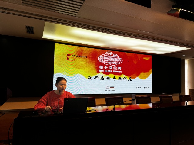 随后,乒乓球队领队徐炳生和羽毛球队领队孔庆玮分别向吴晓明递交了《36365最新线路检测中心乒羽学院第三十三届奥运会及第十五届全运会反兴奋剂和赛风赛纪工作责任书》。紧接着江苏省兴奋剂检查官,反兴奋剂教育讲师张晓媚老师结合自身经验,通过严谨的理论框架、详实的案例支撑,为与会人员讲授了行踪申报更改、三品使用和兴奋剂的危害等相关知识,丰富了大家的反兴奋剂知识,更进一步敲响了警钟——运动员、教练员、科医保障人员和管理干部务必筑牢底线思维,时刻保持警惕,坚决不触碰兴奋剂红线。