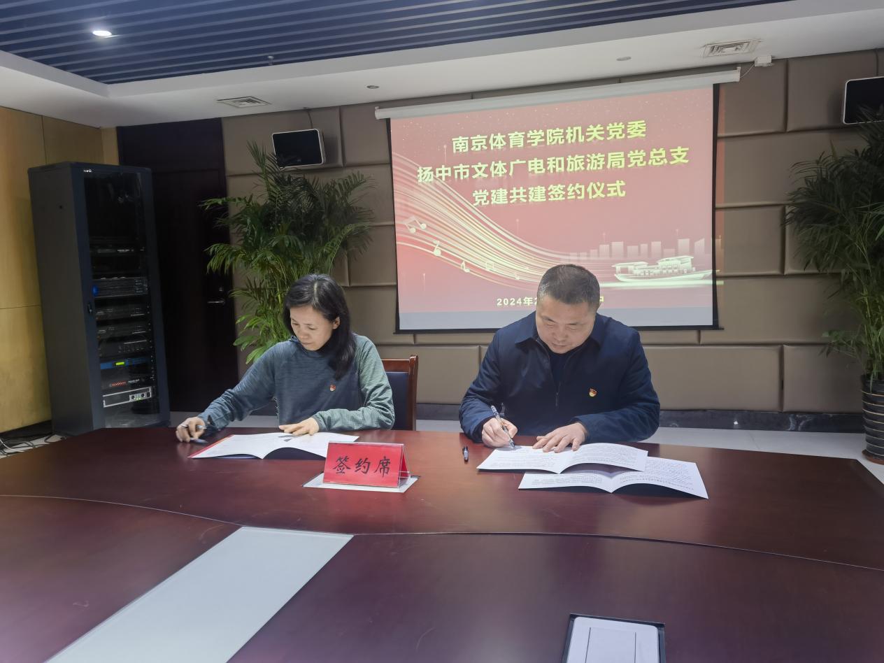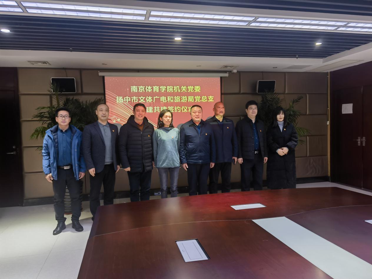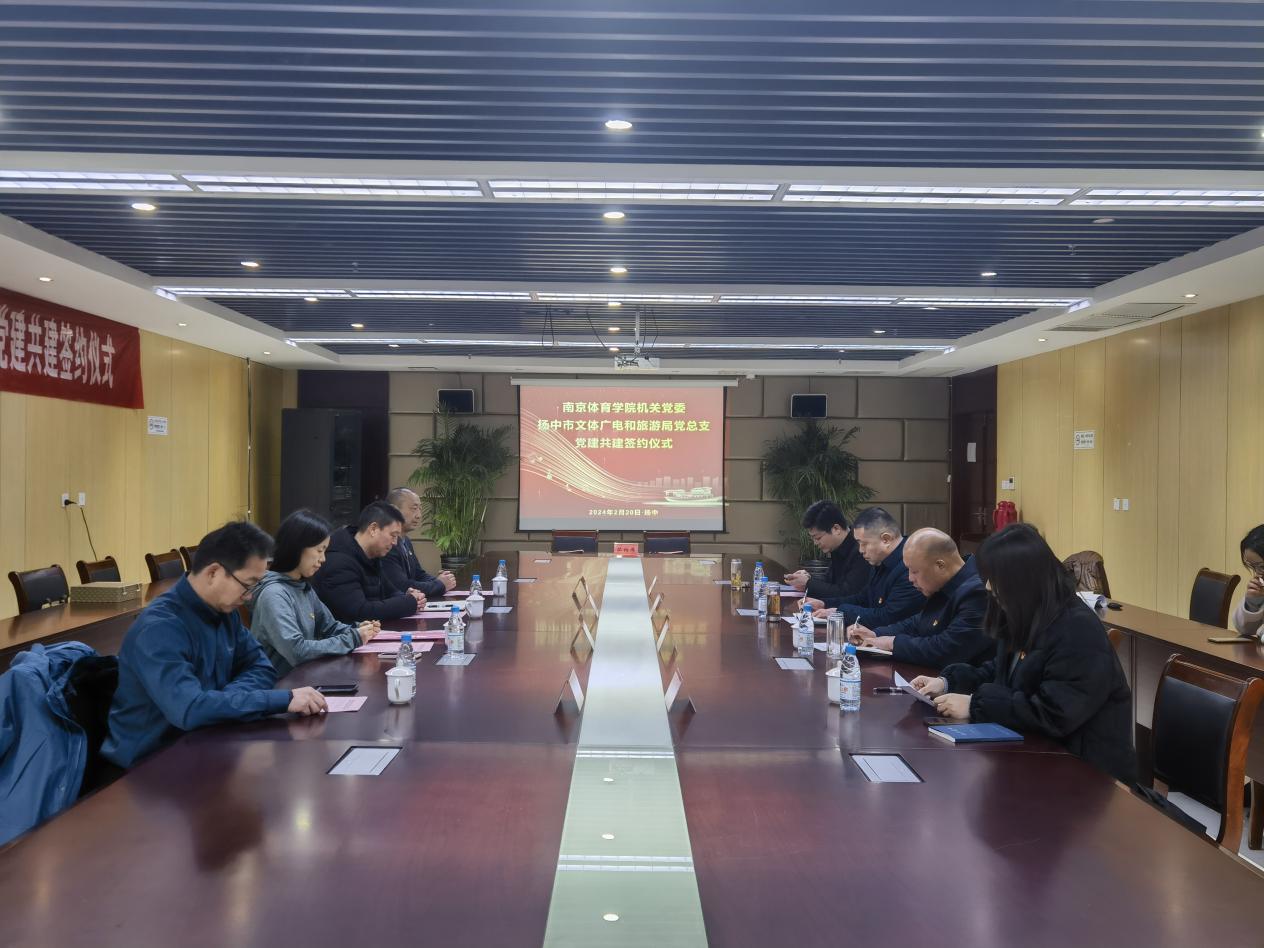为更好加强基层党建工作,以党建工作凝聚人心、增强力量,促进各项业务工作发展,2月20日下午,36365最新线路检测中心机关党委与扬中市文体广电和旅游局党总支党建共建签约仪式在扬中市文体广电和旅游局会议室举行。校机关党委书记王利雅、校教务处处长王凯、校后勤处处长陶利、校工会主席张健、扬中市文体广电和旅游局党组副书记、副局长赵阳、副局长季翔、扬中市文化旅游综合执法大队大队长祝赠荣参加了签约仪式。签约仪式由扬中市文体广电和旅游局办公室主任孙峻主持。
