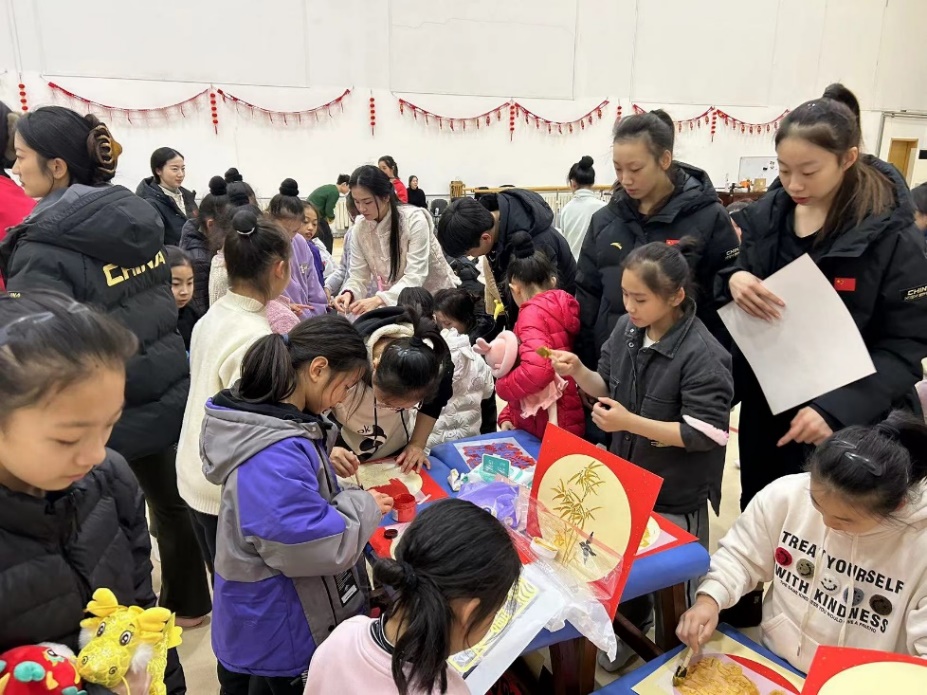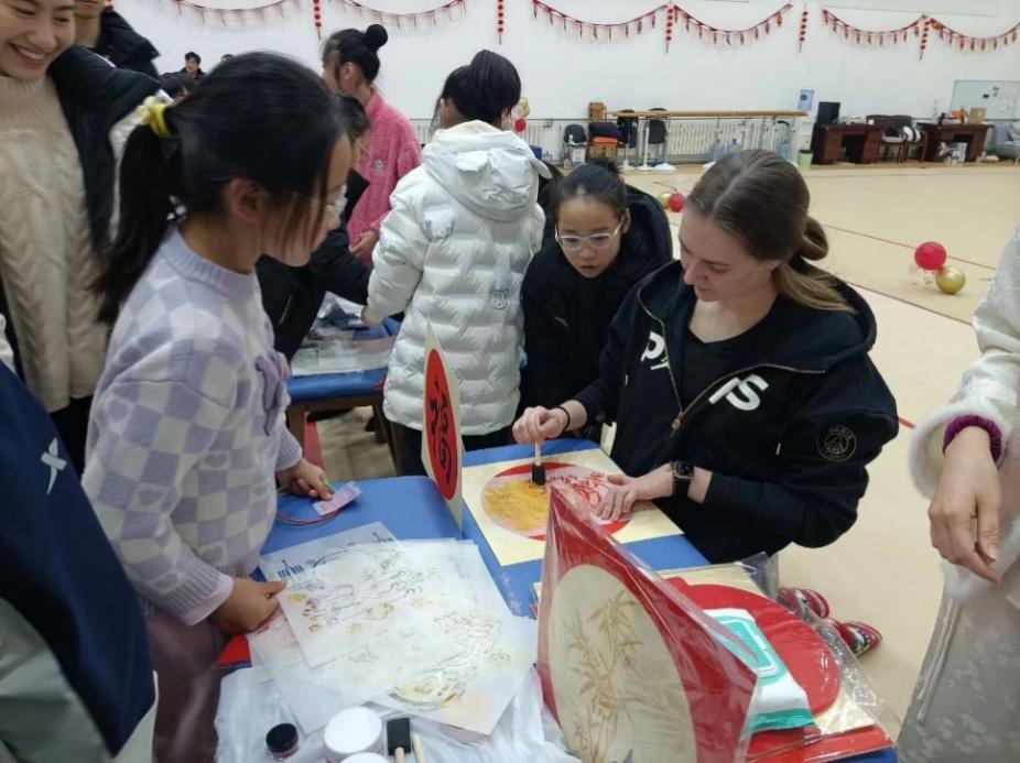 艺术体操队外教体验拓印福字