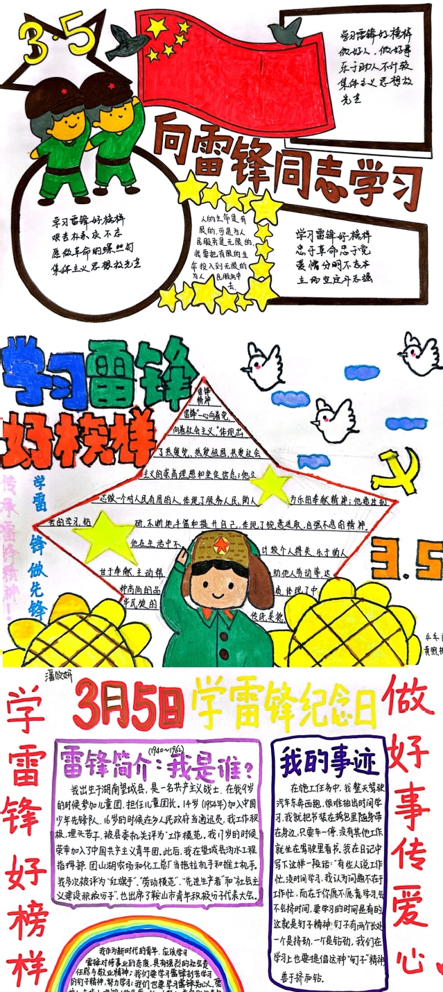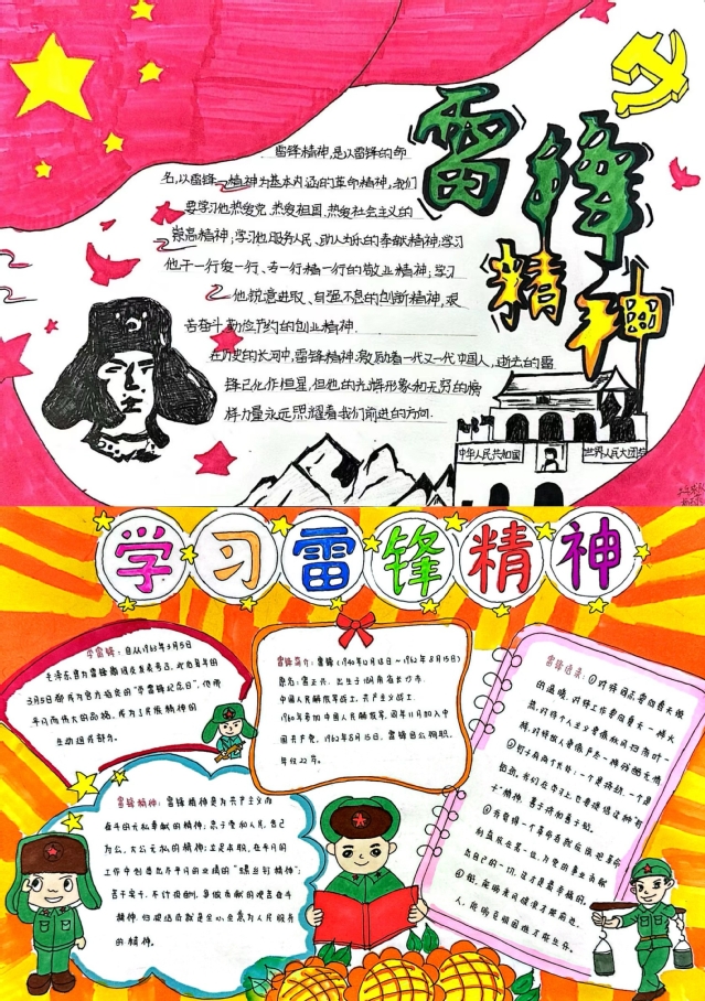 从毛泽东主席题词“向雷锋同志学习”,到习近平总书记指出“把雷锋精神代代传承下去”,61年经久不衰的学雷锋活动,是百年党史的精彩篇章。61年来,雷锋精神依旧光辉耀眼、始终历久弥新。为进一步弘扬和培育民族精神,以雷锋同志为楷模,激励新时代乒羽学院运动员以昂扬向上的精神面貌和奉献实干的担当作为奋进新征程、建功新时代,乒羽学院党总支联合团总支开展了以“传递榜样力量·弘扬雷锋精神”为主题的学习雷锋精神手抄报活动。