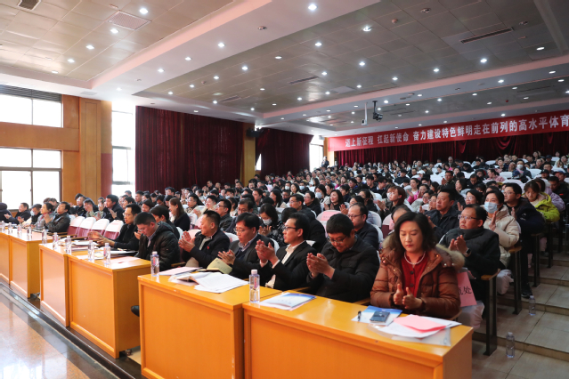 3月7日下午,36365在灵谷寺校区图书馆第一报告厅召开2024年度本科教育教学工作会议暨教育部新一轮审核评估推进大会,大会以“强化审核评估,推进规范运行,奋力谱写高质量发展新篇章”为主题。校党委书记刘红明,党委副书记、校长杨国庆,党委副书记兰亚明,党委常委、副校长肖爱华,党委常委、纪委书记、派驻监察专员周和林出席会议,相关职能部门负责人、各高教二级学院全体教职工300余人参加会议。