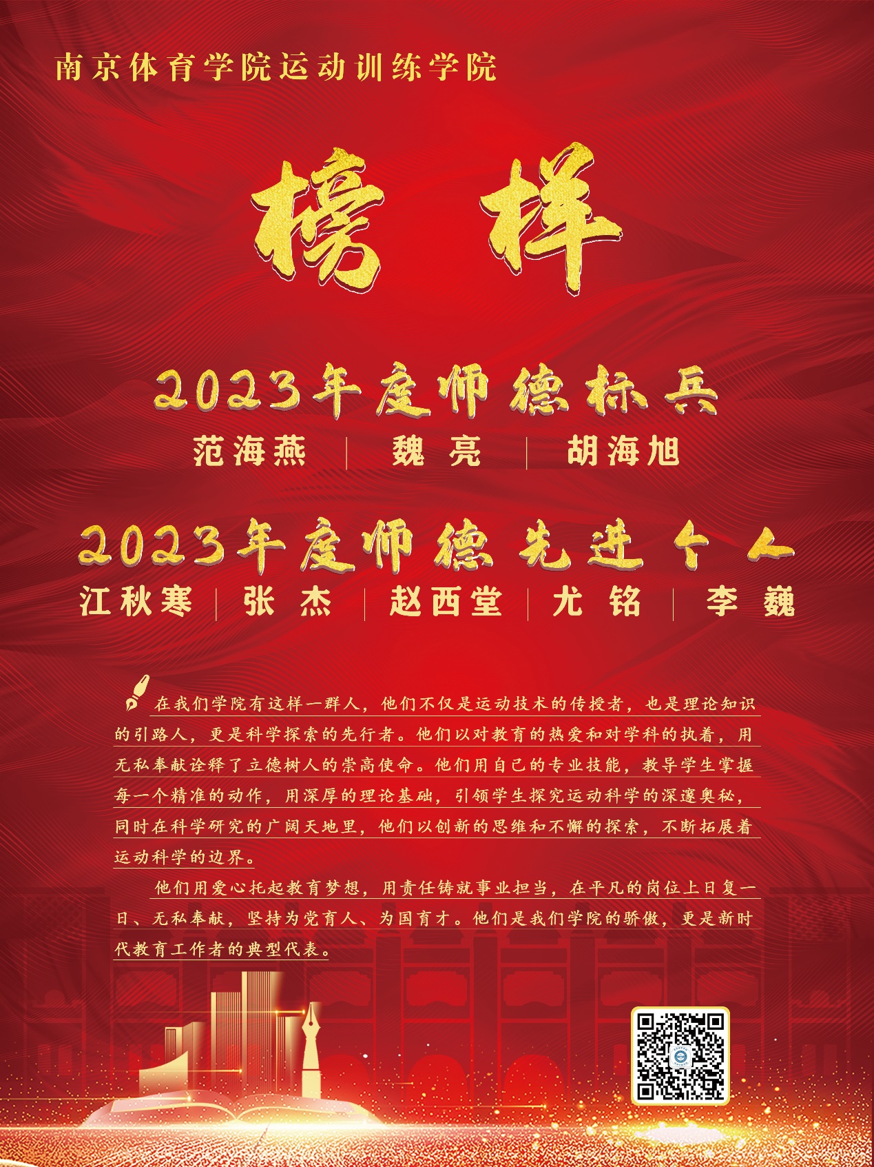 在庄重的氛围中,学院党总支书记葛见珠宣读了表彰决定。根据学院详细制定的评选办法,经过层层选拔和公正评审,最终范海燕、魏亮、胡海旭同志被授予“运动训练学院2023年度师德标兵”荣誉称号,张杰、江秋寒、赵西堂、尤其铭、李巍荣获“师德先进个人”表彰。院长赵琦为他们颁发了荣誉证书,并对他们的辛勤工作和杰出贡献给予了高度评价。