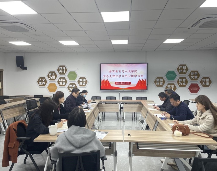 为了深入学习习近平总书记参加江苏代表团审议时的重要讲话精神,体育教育与人文学院党总支于3月12日召开理论中心组学习会。会议由体育教育与人文学院党总支书记卢奎主持,院长沈鹤军、副书记喻菊、副院长康晓磊以及学院理论中心组成员参加学习会。