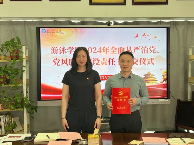3月22日下午,游泳学院在跳水花游馆二楼会议室召开2024年全面从严治党暨党风廉政建设工作会议。学院全体管理干部参加会议。会议由学院党总支书记骆晓娟主持。