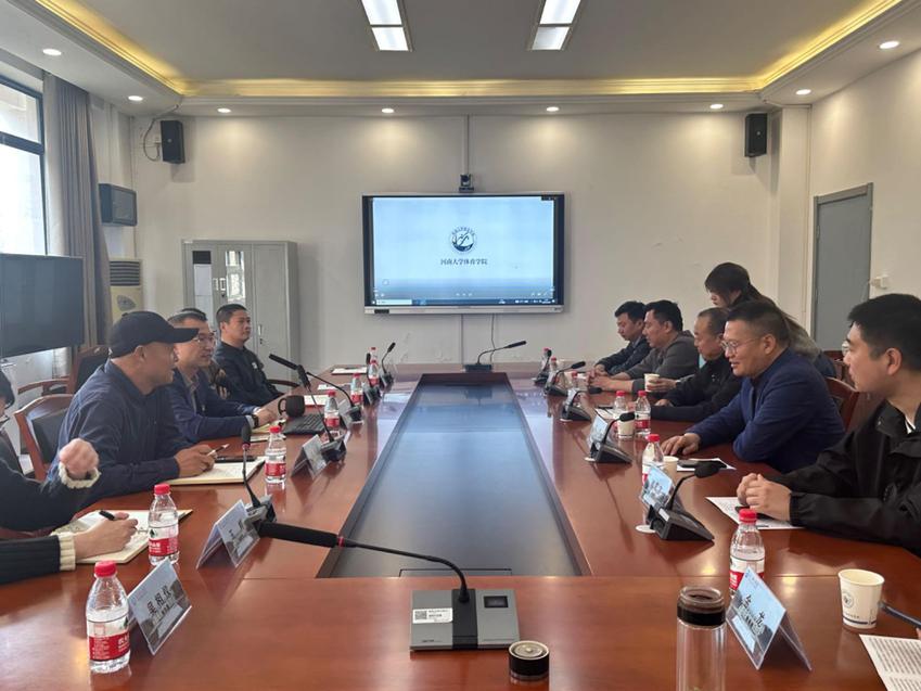 首先,院长王龙飞向河南大学的同仁们表达了欢迎之情,并对体育产业与休闲学院的办学情况和中外合作项目的办学情况进行了介绍。王龙飞院长对我院中外合作项目的招生、组织机构建设、制度建设、教学运行、外教课程、人才培养方案、英语强化课程、经费管理制度、宣传推广等情况进行了详细讲解。