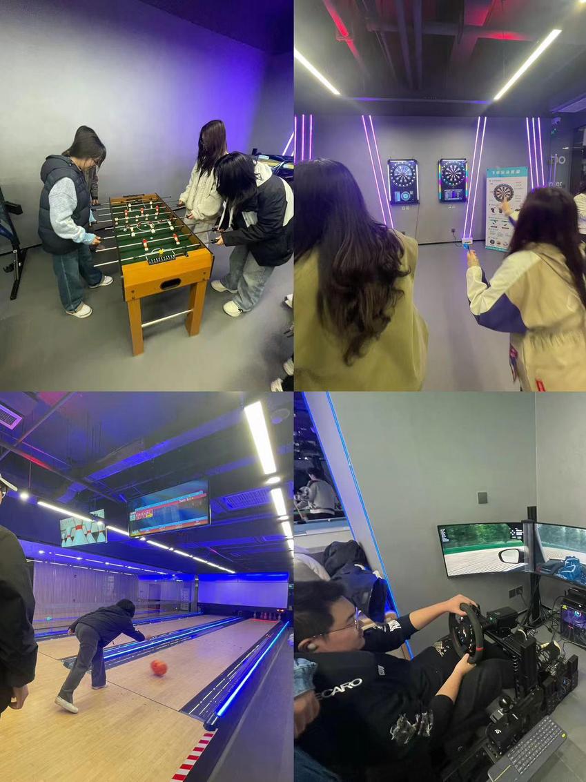 在学习中同学们获悉,作为亚洲最大的室内体育馆,青奥体育馆以其过硬的硬件设施、优良的服务,抓住体育产业发展的时代机遇逐步探索多元经营路线。场馆通过承办体育赛事、举办文艺汇演等,扎实做好内容服务、稳步提升冠名等无形资源价值。在青奥蓝馆,同学们就智慧场馆建设、场馆日常运营等问题向企业专家提问,场馆运营总监陈誉文就同学们感兴趣的话题逐一给予回应。青奥黑馆是潮玩馆,这里有高尔夫模拟设备、棒球训练模拟设备、保龄球、飞镖、桌球等年轻人喜爱的运动项目,同学们进行了各项目体验。