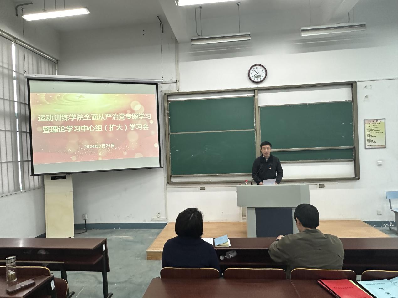 3月26日,运动训练学院于仙林校区教学楼218教室召开全面从严治党专题学习暨理论学习中心组学习(扩大)会。会议由学院党总支书记葛见珠主持。学院全体教师参加学习。