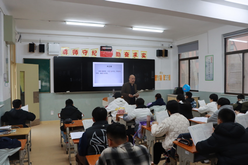 第一节课,由张波老师执教七年级的《木兰诗》的第二课时。张老师重视课堂教学以读促悟,以读助鉴,以读味情的原则,指导学生掌握古诗文诵读的基本原则,并运出一系列方法帮助学生在反复诵读中把握文中人物情感,课堂上书声琅琅,师生氛围融洽。此外,张老师切察学情,以生为本,有效结合学生特点,用体校学生所熟悉的知名体育人物当案例,引导学生深入思考文本,逻辑自洽,展现课堂亮点。