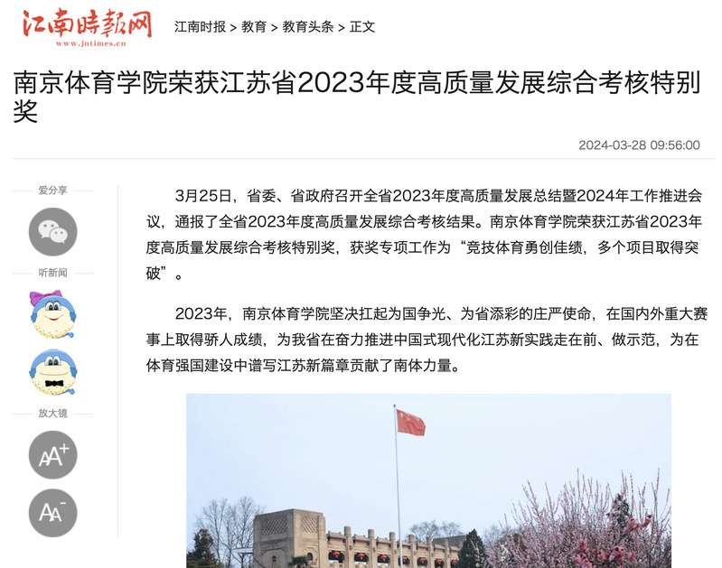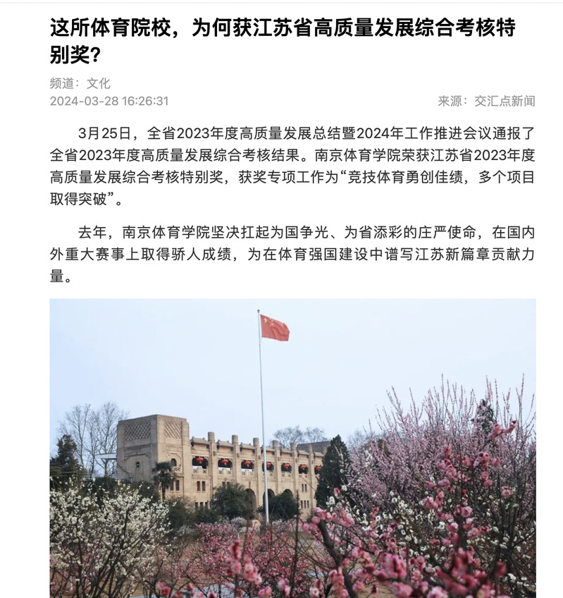 【交点汇新闻】这所体育院校,为何获江苏省高质量发展综合考核特别奖?