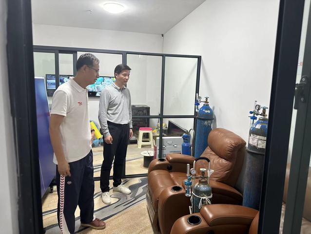 秦学林在观摩队伍训练的同时,进一步了解了游泳队在高原转训工作中的体能训练、运动损伤、疲劳恢复和训练服务保障等方面的需求,并现场给予了指导和帮助。