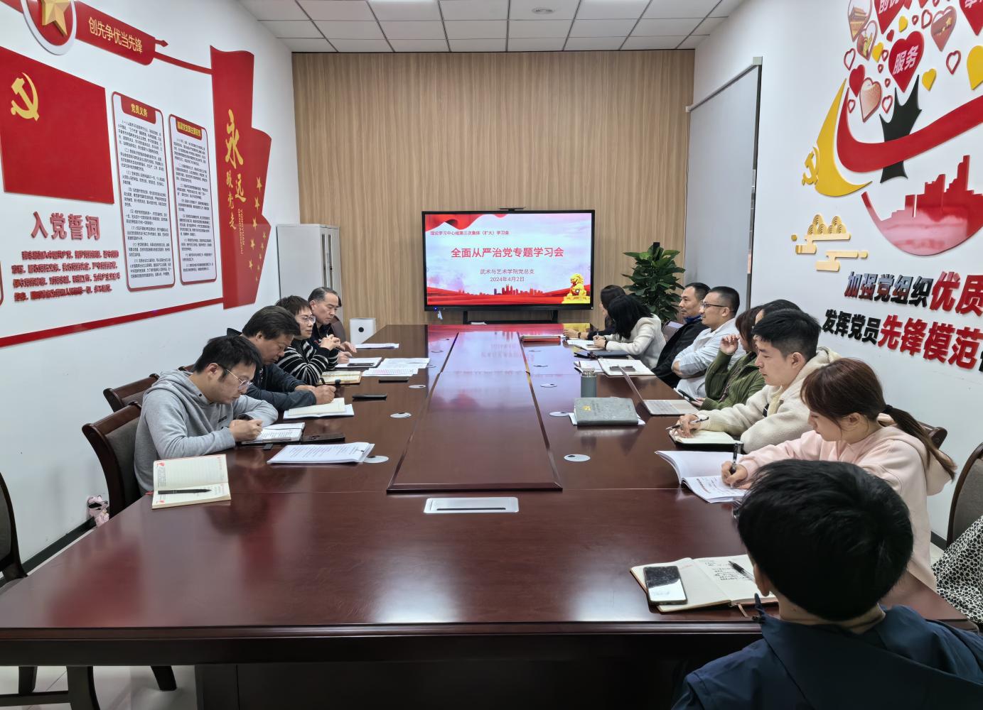 4月2日下午,武术与艺术学院党总支书记叶瑛主持召开学院理论学习中心组(扩大)全面从严治党专题学习会。会议集中观看了警示教育片,学习了习近平总书记在二十届中央纪委三次全会上发表的重要讲话精神、习近平总书记关于全面从严治党的重要论述,传达学习了363652024年全面从严治党暨警示教育大会会议精神及《中共36365最新线路检测中心委员会2024年落实全面从严治党主体责任工作计划》等,并就学院贯彻落实全面从严治党工作进行了部署。学院理论学习中心组全体成员、各支部委员、系副主任参加会议。