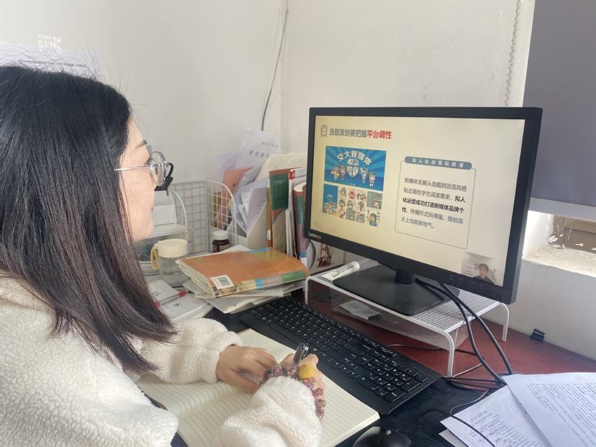附属学校高度重视年轻教师对新媒体理念学习和工具的使用,王蓉就学校新媒体线上课程的制作、编排及录制等工作进行了详细的介绍,并对年轻教师提出了要学好用好新媒体媒介传播和教学的要求。