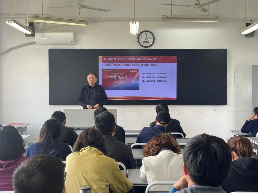 王进结合学院实际,围绕“为什么学”“学什么”“怎么学”三个问题,围绕总书记讲话的重要意义、主要内容以及如何贯彻落实问题进行了共同学习。尤其就切实扛起“坚定信心、鼓足干劲、勇挑大梁”的责任担当,要求学院全体教师要把握好时代脉搏,把学习的成果融入到教育教学中。全体老师也纷纷表示要深入学习领会习近平总书记重要讲话精神精神,落实立德树人根本任务,培养更多担当民族复兴重任的时代新人。