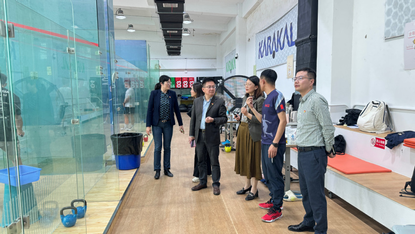 会后,南京聚宝山旅游产业发展有限公司相关人员在柏景岚副院长的带领下参观了学院壁球馆和攀岩场地,并体验了攀岩项目。
