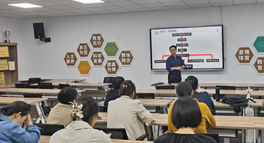 蒋丰整理了《习近平总书记教育重要论述讲义》的各章之间的逻辑关系,并就教育部以及江苏省教育厅关于“大思政课”建设要求的纲要和实施方案文件之间的关系以及内容进行解读。提出结合专业特点分类推进课程思政建设。公共基础课需注意提高大学生思想道德修养、人文素质、科学精神、宪法法治意识、国家安全意识和认知能力的课程,注重在潜移默化中坚定学生理想信念、厚植爱国主义情怀、加强品德修养、增长知识见识、培养奋斗精神,提升学生综合素质;教育学类专业课程注重加强师德师风教育,争做有理想信念、有道德情操、有扎实学识、有仁爱之心的“四有”好老师;体育类课程要树立健康第一的教育理念,培养学生顽强拼搏、奋斗有我的信念,激发学生提升全民族身体素质的责任感。