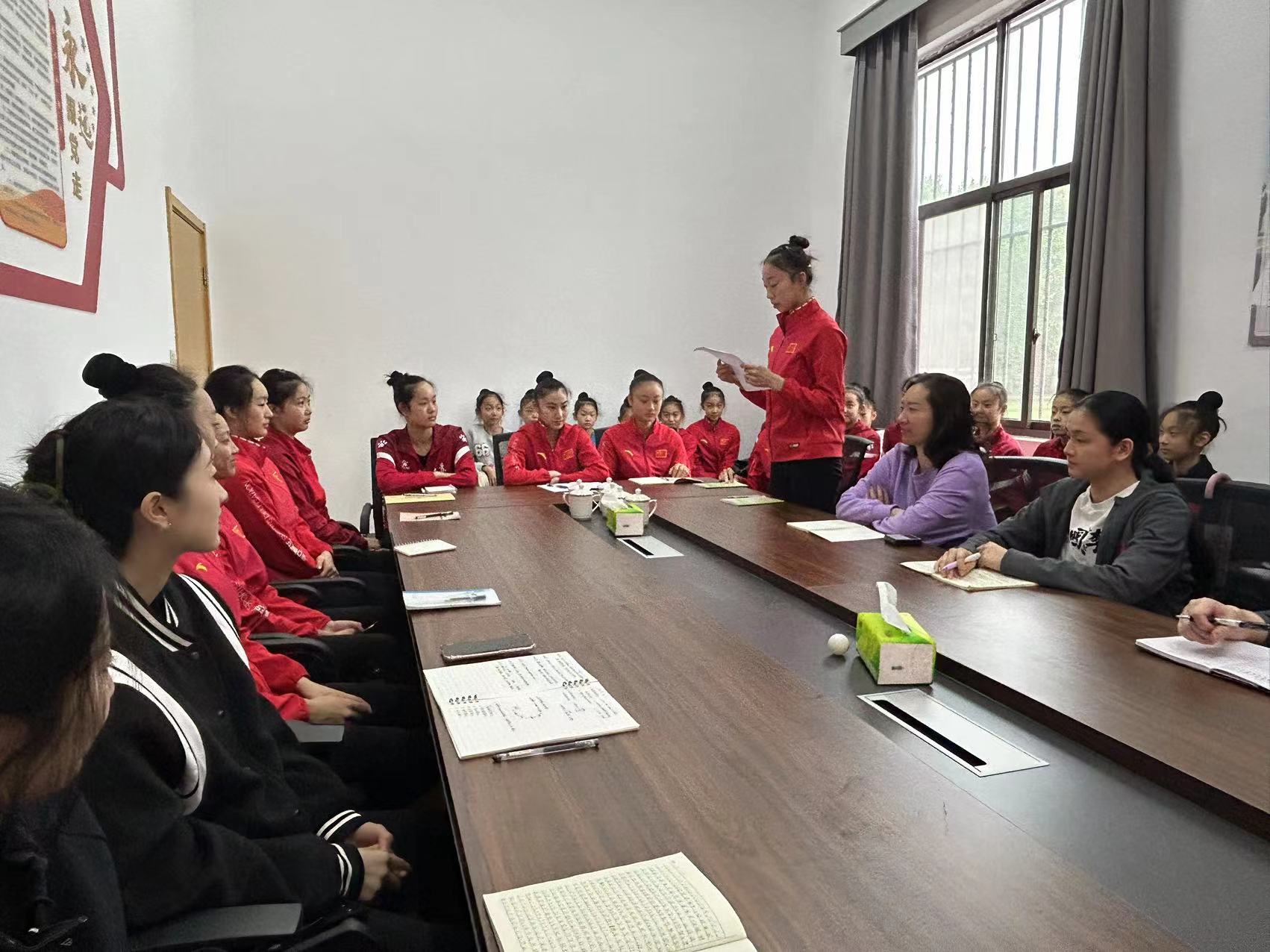 杨干首先传达了省体育局《关于做好全国“最美巾帼奋斗者”张雨霏先进事迹宣传学习的通知》要求,结合校训练处下发的“学雨霏、当先锋”大讨论主题,要求大家积极思考,踊跃发言。