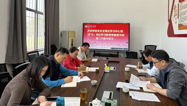 4月24日上午,乒羽学院党总支理论学习中心组(扩大)开展了党纪学习教育专题读书班第二次集中学习。党总支副书记吴晓明主持学习,全体管理干部参加了学习。