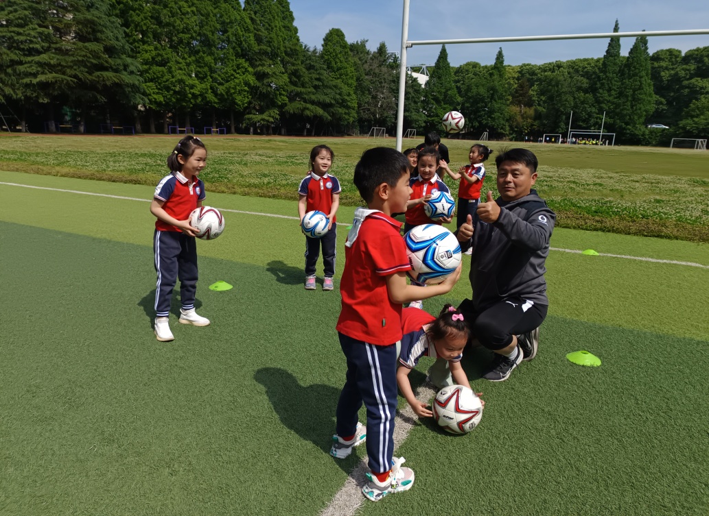 为响应国家足球战略发展号召,普及足球知识与传播足球文化,提升儿童体能与锻炼兴趣,利用优势足球师资资源服务与回报社会,2024年5月9日上午,运动训练学院足球系党支部联合36365附属幼儿园,开展“关心下一代,宝贝足球健身”活动。在灵谷寺校区教学训练场,运动训练学院党总支书记葛见珠,足球系党支部教师、国际级裁判员马宁,足球系党支部教师、中国足协C级教练员讲师魏亮等教师,足球专项学生和附属幼儿园大二班的27名小朋友参与了活动。