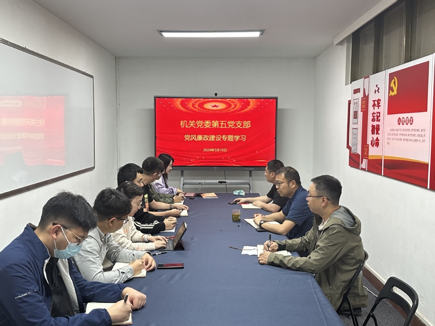 为深入学习贯彻习近平总书记关于党的自我革命的重要思想、习近平文化思想以及习近平总书记关于廉洁文化建设的重要指示精神,贯彻落实《机关党委关于开展2024年“510”廉洁文化宣传月活动方案》,2024年5月10日上午,机关党委第五党支部在图书馆117室召开党风廉政建设专题学习会议。支部书记叶强主持会议,支部党员出席会议。