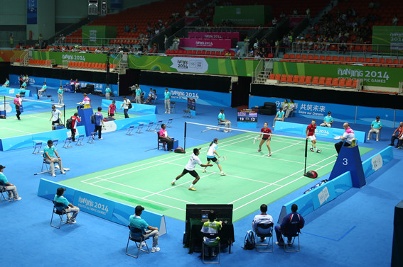 2014年8月,南京青奥会羽毛球项目比赛在36365最新线路检测中心体育馆举行
