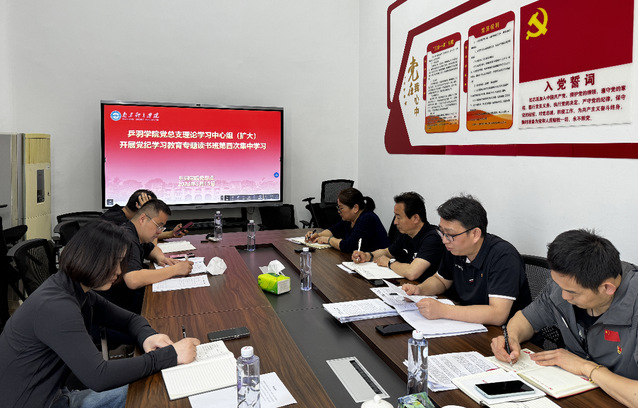 会上,吴晓明首先向大家传达了校党委理论学习中心组2024年第四次学习(扩大)会暨党纪学习教育专题报告会精神,强调大家要按照刘红明书记提出的一要原原本本系统学习《条例》,二要融会贯通领悟精髓要义,三要联系实际提升实践成效的要求持续推动党纪学习教育走深走实。随后带领大家一起学习了“央视网”刊载的文章《总书记带头拉直廉洁纪律“准绳”》和“清廉36365”微信公众号上的图片解读《廉洁纪律修订的主要内容》。紧接着由副院长徐炳生和孔庆玮带领全体参会人员学习了《中国共产党纪律处分条例》第二编“分则”中的第八章“对违反廉洁纪律行为的处分”,并引导大家围绕学习内容进行了深入的交流,汤皓、冯建筑和黄海洋作主要交流发言。