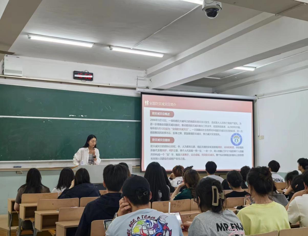 各年级通过班会、海报、视频等形式,线上线下相结合积极进行防灾减灾知识的科普,包括在遭遇地震、火灾、雷电、洪水、暴雨、台风等自然灾害时应掌握的基本防灾知识和避灾技能。5月15日下午,2021级全体学生于少体校五楼教室开展防灾减灾安全教育主题年级大会。会上,陆丹老师介绍了防灾减灾日的由来,并播放汶川地震的真实记录短片,使同学们了解“防灾减灾日”确立的时间、意义和设立目的,明确提高防灾减灾能力的重要性。接着通过观看知识宣教片、案例分享、互动答题等环节,学习各类自然灾害出现的先兆和特点,以及如何有效防灾和避灾的方法,着力增强同学们的紧急避险意识、防灾减灾意识及自救互救能力。通过防灾减灾安全教育活动,大家纷纷表示不仅学习了防灾减灾知识,更加懂得生命的可贵。
