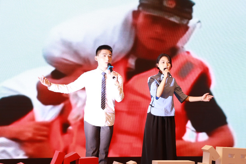 学院优秀学生代表周航带领团员青年代表重温入团誓词,铿锵有力的誓词提醒青年学生在青春的舞台上,要牢记入团初心,勇担时代重任,以实际行动践行青春誓言。学院优秀退伍学生王储,优秀团员代表许梦涵、高文月,优秀青年教师代表付乐,分别以《热血铸军魂,青年有担当》、《逐梦向研途,踏实万里路》、《实践担使命,力行筑青春》及《体育强国梦,青春勇担当》为主题进行了“运康青年说”师生信仰公开课宣讲,他们从军旅生活、学业进修、志愿服务、专业发展等方面,分享了自身的学习和实践经历,号召青年学生在乡村振兴、社会服务、卫国戍边等各领域各方面勇当排头兵和生力军,展现出自信自强、刚健有为的精神风貌。教师代表徐凯老师带领学生代表华闫彦、朱琪、徐嘉浩、陈杨带来了朗诵《青春》,他们通过饱含深情的声音,传递着以爱国主义为核心的五四精神。李雅萱、徐嘉浩两位同学演唱的歌曲《错位时空》五四特别版将整场晚会带入高潮,伴随着动人的歌声,历史与现实的交错,重温了“五四”那激情燃烧的岁月,让热血跨越时代共振,让五四精神薪火相传。