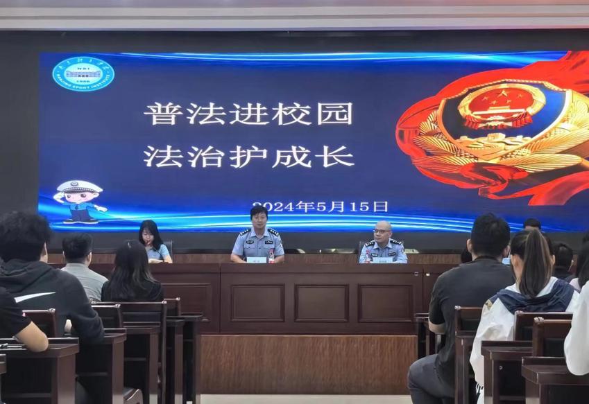 为深入贯彻法治精神,加强青年法治教育,提高青年法律意识,5月15日下午,仙林校区管委会办公室联合体育产业与休闲学院和运动训练学院在仙林校区报告厅举行“普法进校园,法治护成长”宣讲活动。本次活动有幸邀请了南京市仙林派出所所长赵晓雷,南京市公安局法制大队大队长律波,南京市栖霞分局刑警大队副大队长傅鑫龙为同学与老师们宣讲。