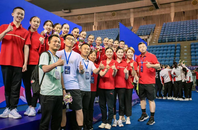 “学雨霏”行动促使运动员们凝心聚力,在各大赛事中奋勇拼搏,斩获累累成果。5月10日至12日,在武汉体育中心游泳馆举办的2024全国花样游泳冠军赛中,江苏花游队14名运动员参加了10个小项的比赛,共计获得3枚金牌,3枚银牌,3枚铜牌,1个第六名,实现了人人登台,人人夺牌的目标。