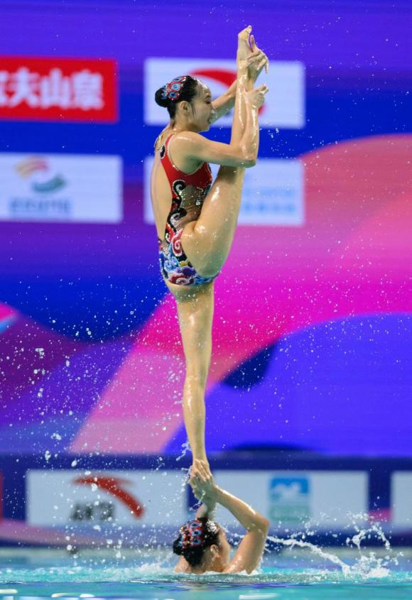 闫飞雪,江苏花样游泳队重点队员,在今年全国花样游泳冠军赛双人自由自选赛中获得金牌、双人技术自选赛获得银牌。曾获2023年全国花样游泳锦标赛双人自选第二、2022年全国花样游泳锦标赛自由组合第三。