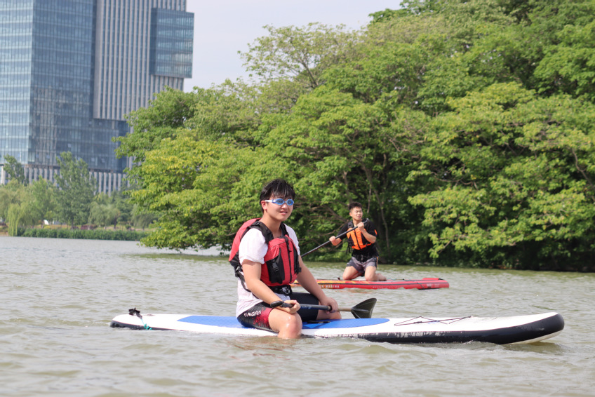 在实践练习过程中,学生们不仅学习了桨板的基本技术,还通过团队协作,增强了互助和沟通能力。许多同学表示,这是他们第一次接触桨板运动,既新奇又刺激。在亲近自然的过程中,不仅可以锻炼身体,还提升了勇气和信心。